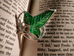 (Lórienský lístek je ten typ dárku, o který bych si v životě neřekla, ale jak ho mám jednou v prackách, jsem z něj nadšená. Jen mě malinkato mrzí, že je to odznak, ne brož – připnutý na šatech je krapet nepohodlný, vyzkoušeno za vás. A ne, rozhodne mi to nezabrání nosit ho dál.)